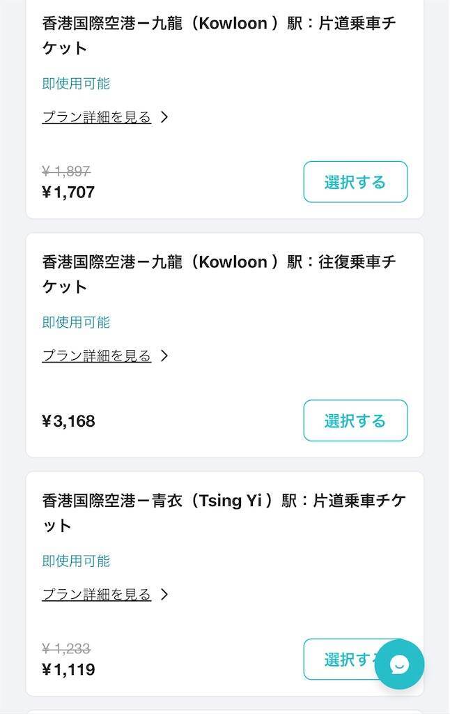 片道は、「空港ー九龍駅:片道乗車チケット」を選ぶだけ。